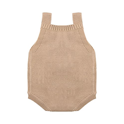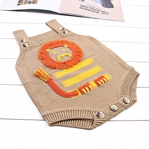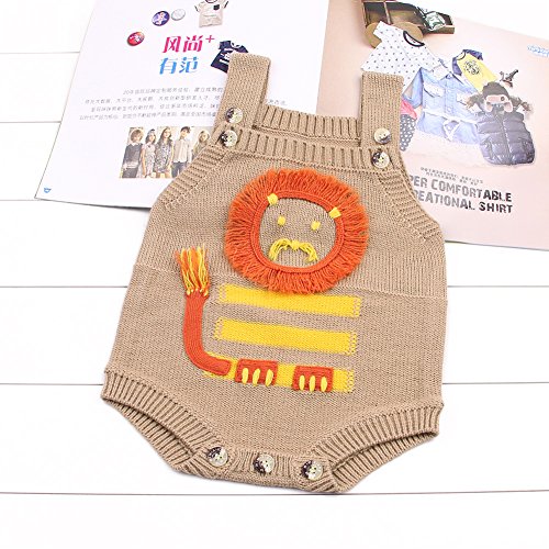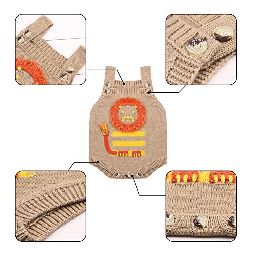キッズ セーター 編み物 赤ちゃん服 ベビー服 女の子 男の子 袖なし 可愛い ロンパース カバーオール ボタン付き 着替え簡単 (70, ブラウン)
