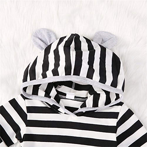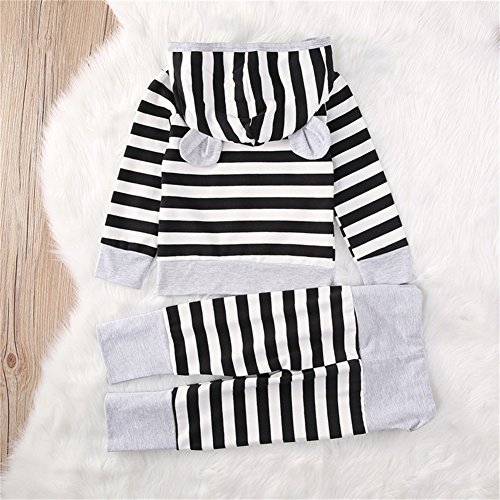 ベビー服 キッズ 赤ちゃん 幼児 フード付き 上着 ズボン 2点セット ロングパンツ ストライプ 可愛い 女の子 男の子 綿 長袖 (80, B)