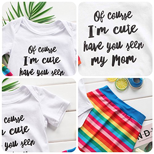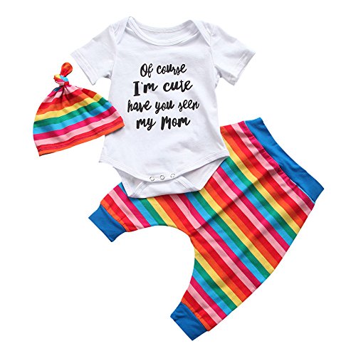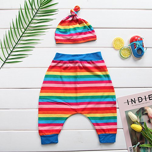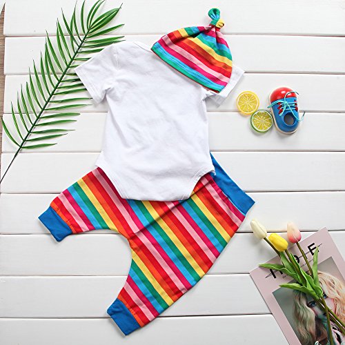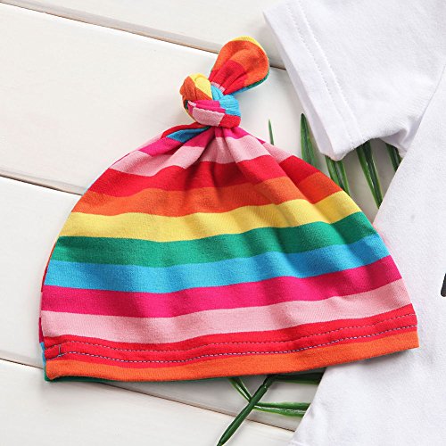 ベビー服 赤ちゃん服 ロンパース ロングパンツ 帽子 半袖 虹 夏服 秋物 可愛い 女の子 3点セット セットアップ 出産祝い 誕生日 (80)