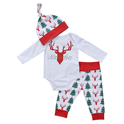 ベビー服 ロンパース ズボン 帽子 赤ちゃん服 長袖 ロングパンツ 3点セット クリスマス 可愛い 新生児 男女兼用 (90)