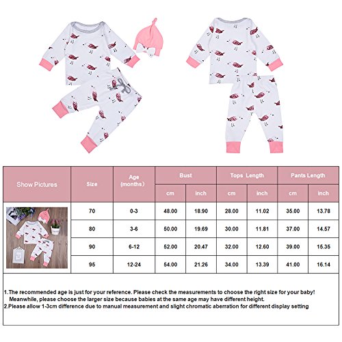 ベビー服 3点セット 肌着 tシャツ ロングパンツ 帽子 部屋着 鳥プリント 赤ちゃん 女の子 綿 可愛い ソフト (90)