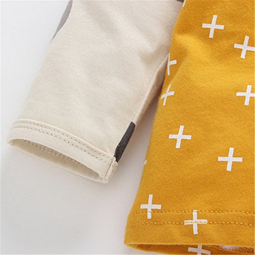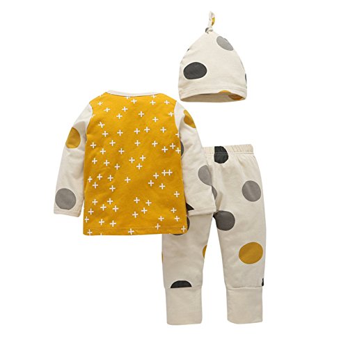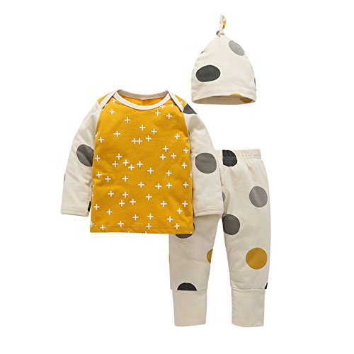 ベビー服 春秋 Tシャツ ズボン ロングパンツ 綿 柔らかい ソフト 快適 長袖 帽子付き 3点セット 男の子 女の子 (100, イェロー)