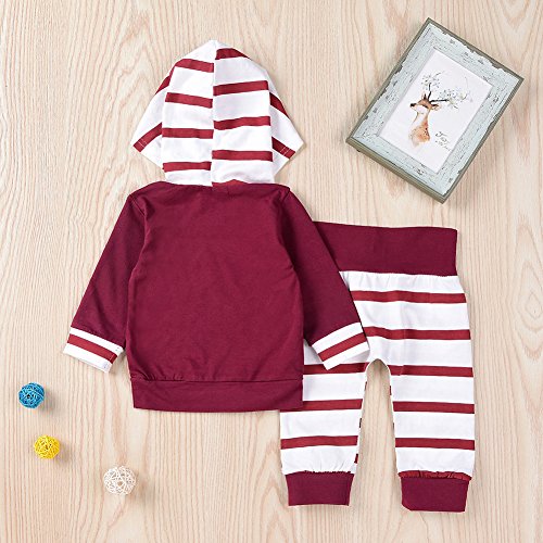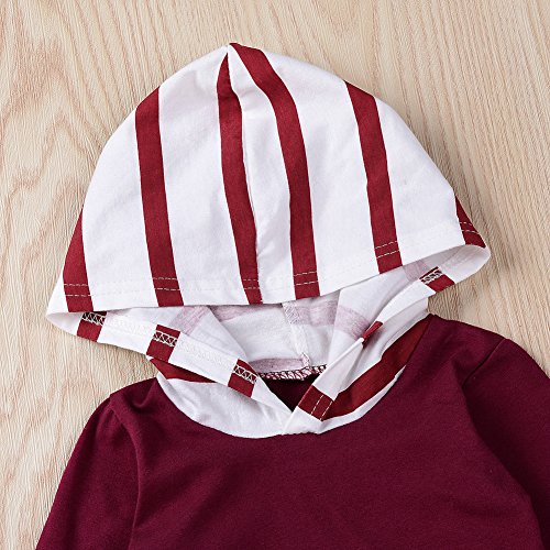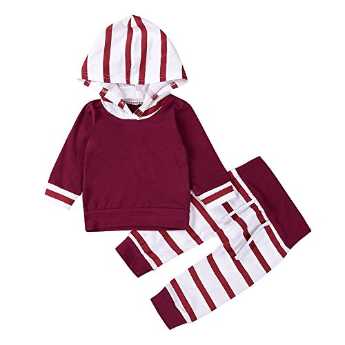 ベビー服 赤ちゃん服 2点セット 長袖 Tシャツ ズボン ロングパンツ 秋服 普段着 女の子 男の子 フード付き ストライプ コットン (100)
