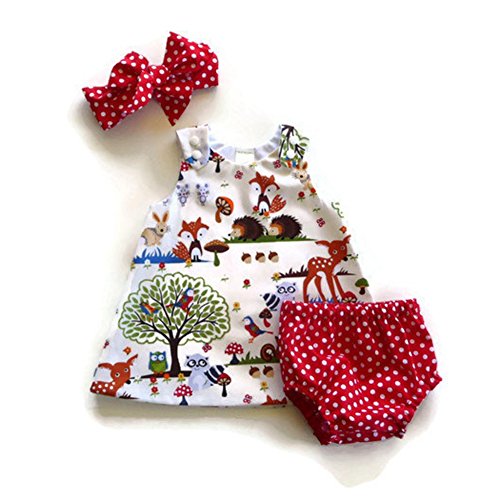 PER ベビー服 ドレス ショートパンツ ヘッドバンド 子供服 女の子 セットアップ 動物 可愛い (90)