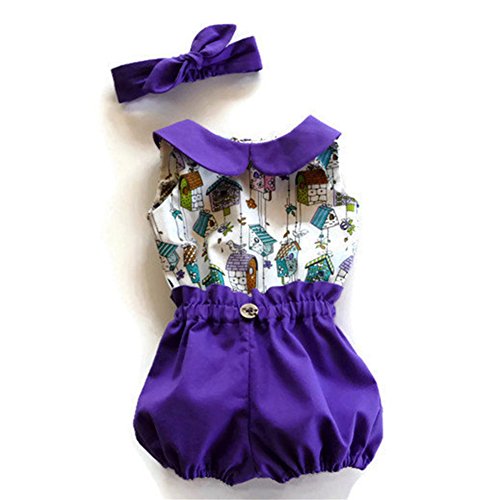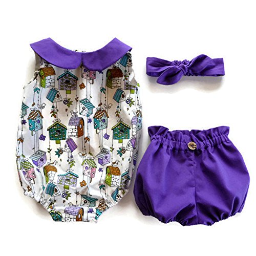 ベビー ロンパース ショートパンツ 三点セット ヘアバンド付き 可愛い 夏服 女の子 綿 夏服 (70)