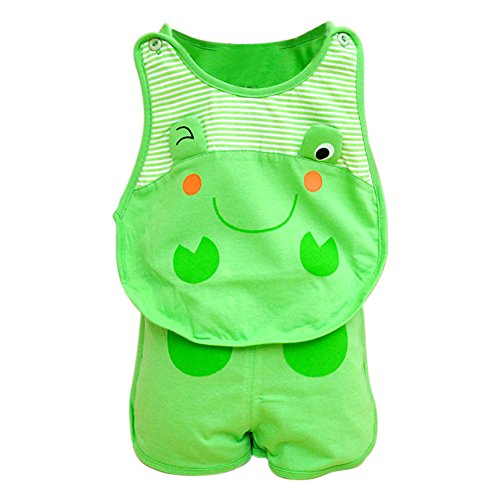 キッズ 二点セット 可愛い Tシャツ ショートパンツ ショーツ 上下セット 男女兼用 夏物 カジュアル ベビー 赤ちゃん 幼児 (M, グリーン)