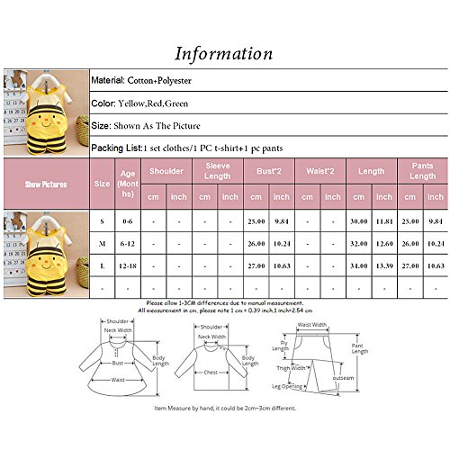 L:12-18ヶ月、バスト54cm、着丈34cm、パンツ長さ27cm