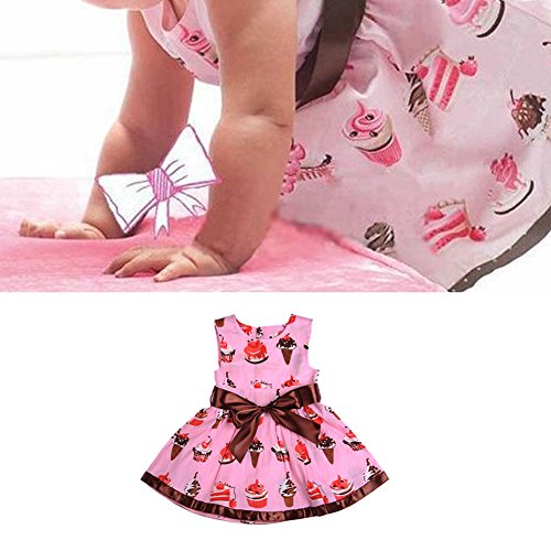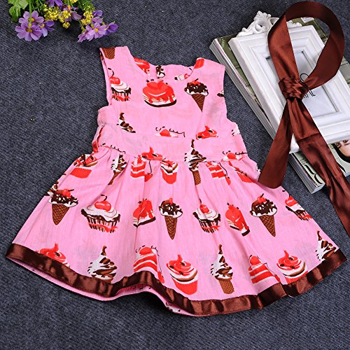 - 可愛いアイスクリームとケーキプリント、蝶結びベルト付き、女の子の可愛さをより引き立たせてくれます。