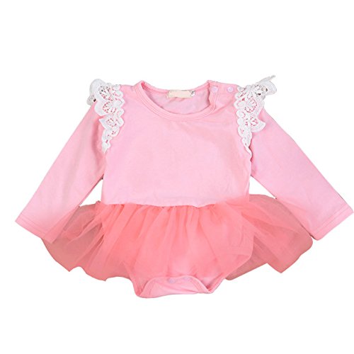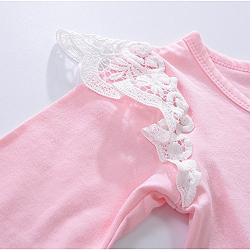 PER ベビー服 キッズ服 ドレス 子供服 レース 長袖 可愛い 天使 プレゼント 綿 ふわふわ 春夏 (S, ピンク)