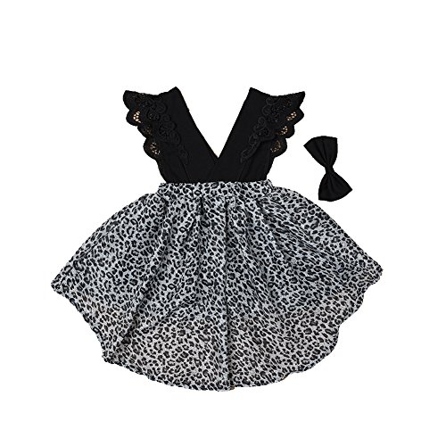 PER 姉妹ドレス キッズ 子供服 ワンピース ヘッドバンド付き ヒョウ柄 レース付き 可愛い 綿 夏服 (100cm, 姉)