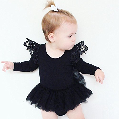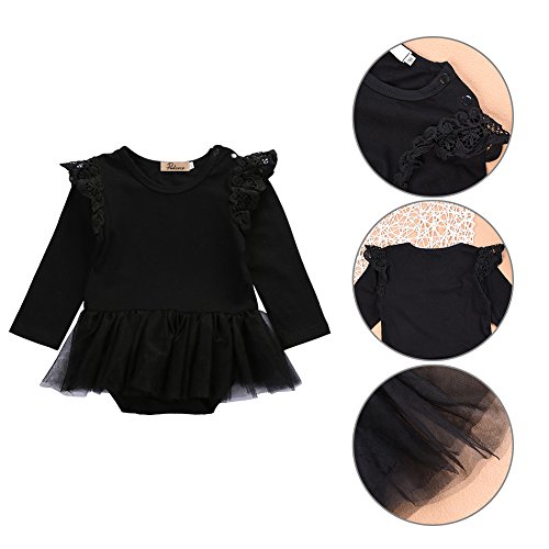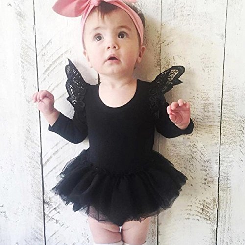 PER ベビー服 キッズ服 ドレス 子供服 レース 長袖 可愛い 天使 プレゼント 綿 ふわふわ 春夏 (XL, ブラック)
