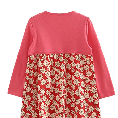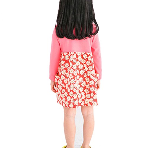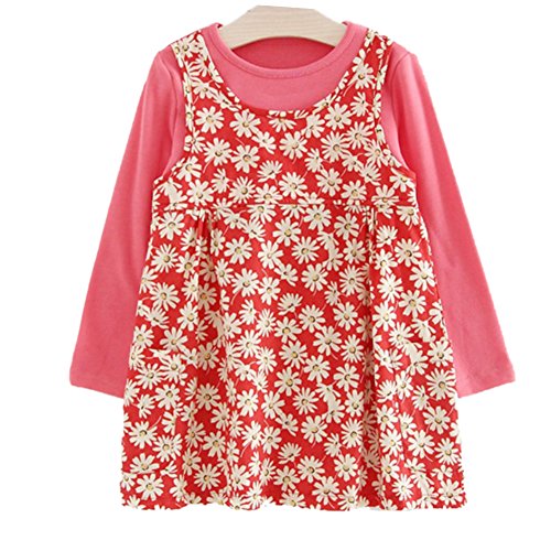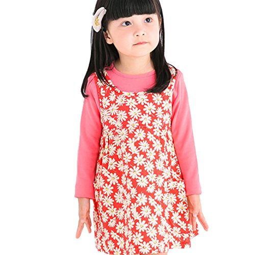 ガールズ ドレス ワンピース 長袖 スカート 子供服 洋服 キッズ 女の子 偽二点セット 春 秋 花柄 可愛い (ピンク, 110)