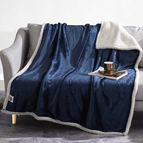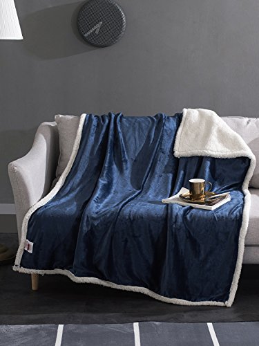 シェルパスロー毛布オーバーサイズソフトリバーシブルマイクロファイバー毛布ソファベッド 50*60 ブルー