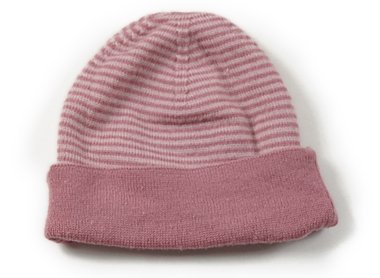 - 渋いピンクのシンプルなボーダーニット帽。実際のサイズ表記は47-49cmです。若干毛羽立ちがありますが目立った汚れのない良品です。