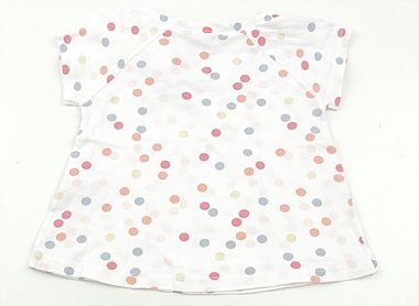 実際のサイズ表記は12m/74cmです。肩ボタン一つにごく小さな変色がありますが目立つ汚れもなくまだまだお使いいただけます。とっても可愛い商品です。