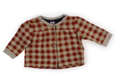 - 薄手スウェット素材のカーディガンです。襟、袖口にシミが見受けられますが、へたりなどはなくまだまだ活躍してくれそうです。実際の実際のサイズ表記は12mです。