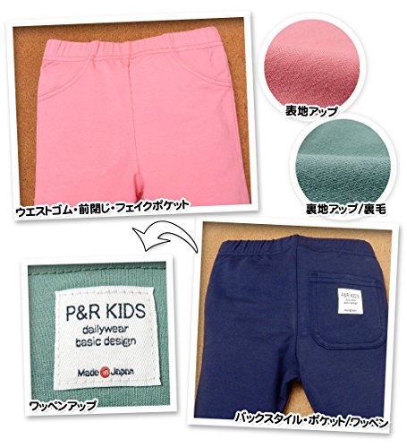 (ピンク/80cm)ベビー服 男の子 女の子 6分丈 パンツ ボトム ストレッチ 裏毛 ウエストゴム ポケット ワッペン 男児 女児 ベビー