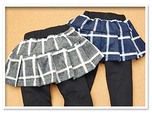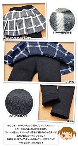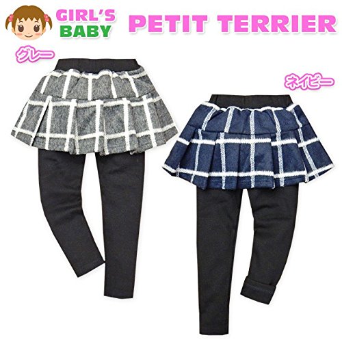 (ネイビー/90cm)ベビー服 女の子 スカート レギンス スカッツ ボトム 重ね着風 紡毛 プリーツ ウインドウペンチェック柄 ウエストゴム 女児 ベビー