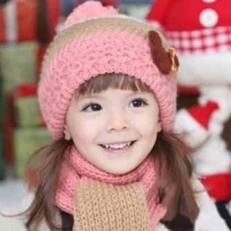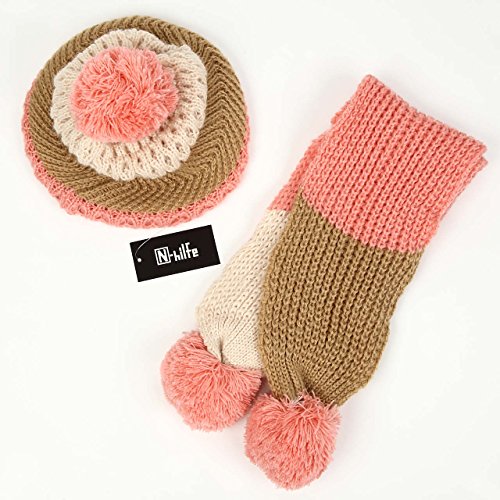 N-hilfe キッズ ニット帽 x マフラー あったか 帽子 女の子 防寒 ニット帽子 子供用 (ピンク)