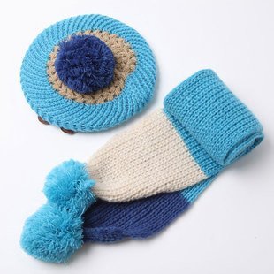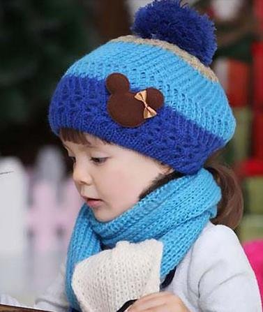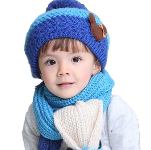 N-hilfe キッズ ニット帽 x マフラー あったか 帽子 女の子 防寒 ニット帽子 子供用 (青)