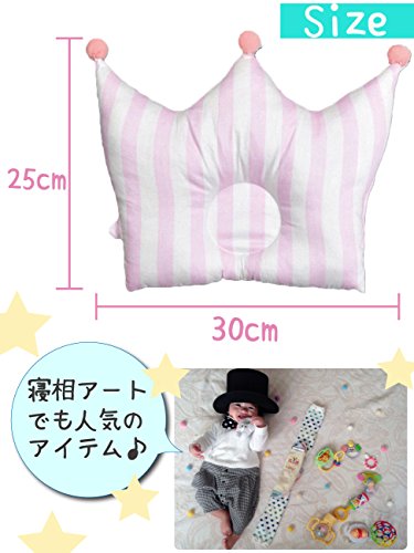 PICOH(ピコー) ベビー 枕 かわいい 王冠 まくら 夜泣き 寝ハゲ 対策 プレゼント 出産祝い 約30×25cm (ピンクストライプ)