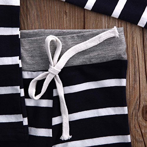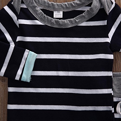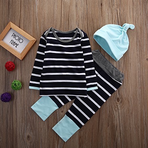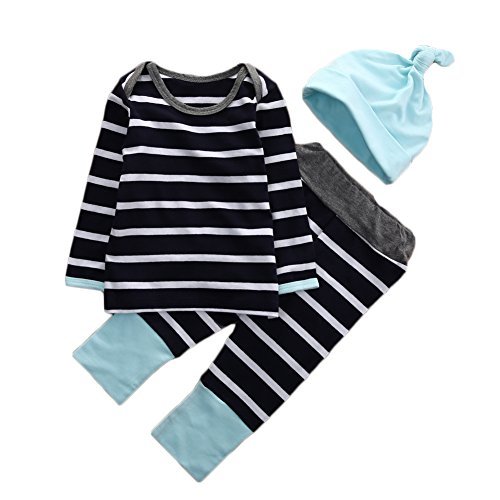 ベビー服 男の子 ストライプ 長袖 ラグラン袖 Tシャツ&クロス パンツ セット +帽子 (90 (12-18M))