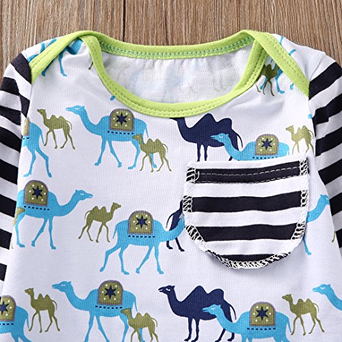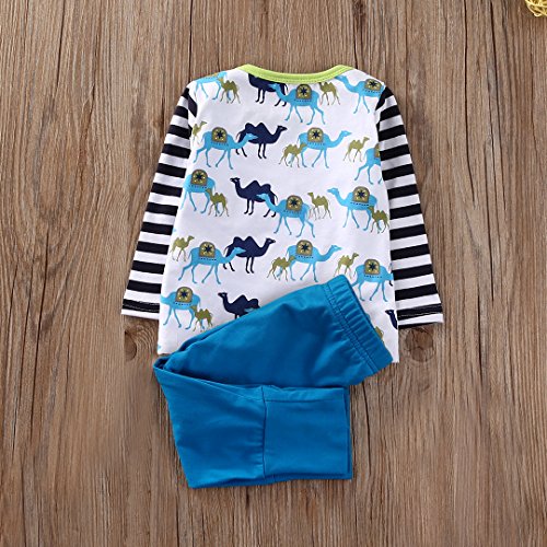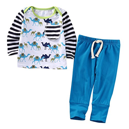 ベビー服 男の子 女の子 長袖キャメル プリントパーカーとパンツアウトフィット (80(6-12M), ブルー)