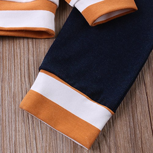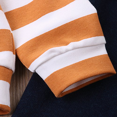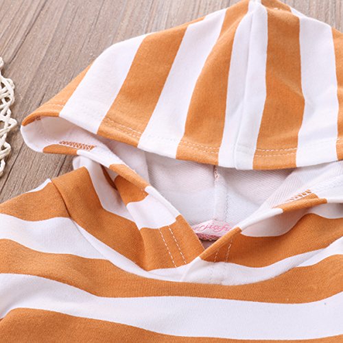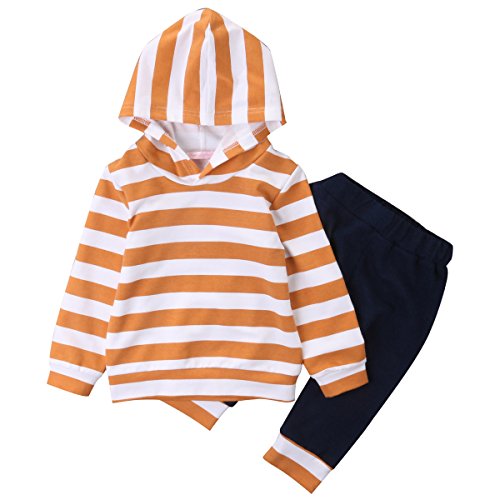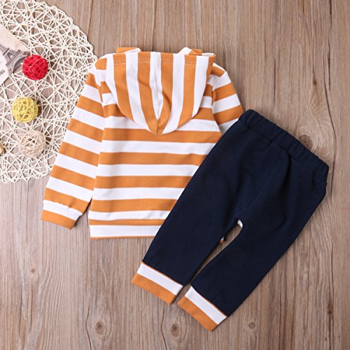 ベビー服 男の子 女の子 長袖ストライプ プリントパーカーとパンツアウトフィット (100(18-24M), オレンジ)