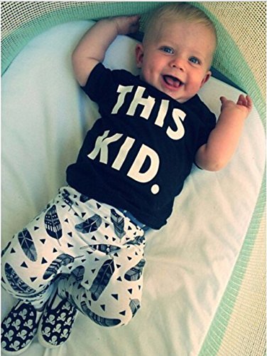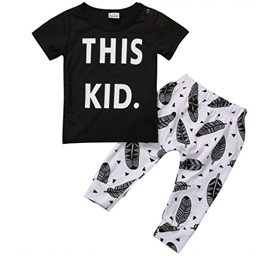 ベビー服 男の子 レタープリント 半袖  THIS KID Tシャツ パンツ セット (80 (6-12M), 黒い) [並行輸入品]