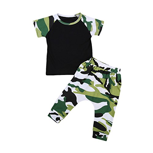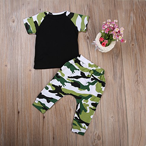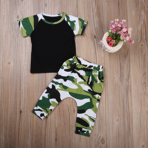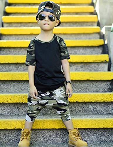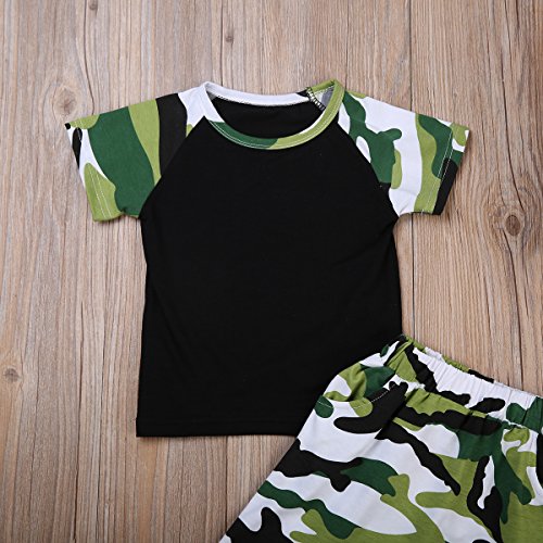 ベビー服 男の子 レタープリント 半袖 迷彩 Tシャツ パンツ セット (100 (2-3 Years)) [並行輸入品]