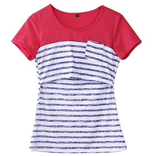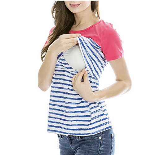 授乳服 ベーシックな無地デザインの授乳口 授乳服 / マタニティ 授乳用トップス (M, ブルー)