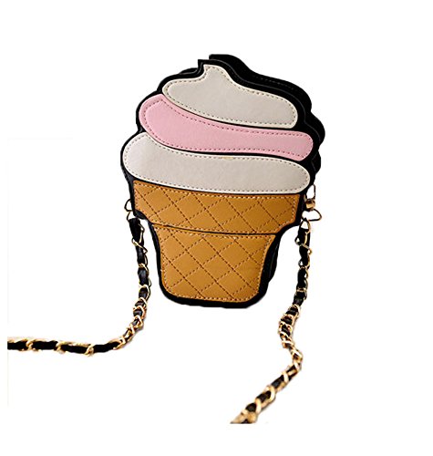 女性用バッグ PUレザー レディース ミニ 可愛い ポシェット 肩掛けバッグ 斜めかけバッグ ショルダーバッグ (アイスクリーム)