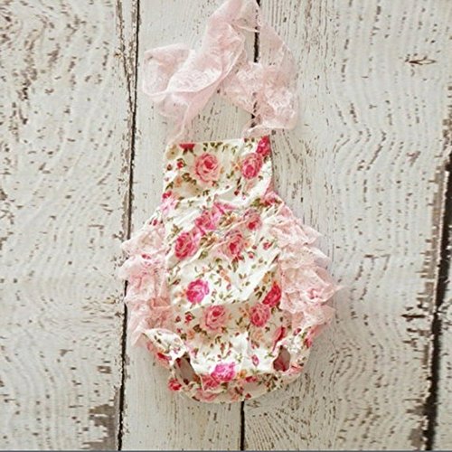 ベビー服 女の子 ロンパース 夏着 袖なし バックレス 花柄 ラッフル (100 (12-18M))