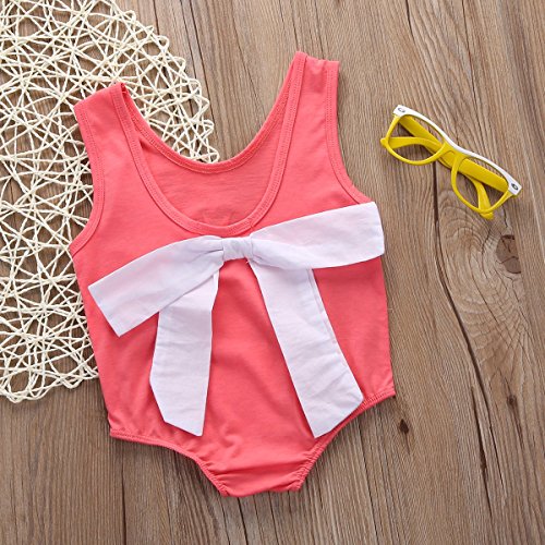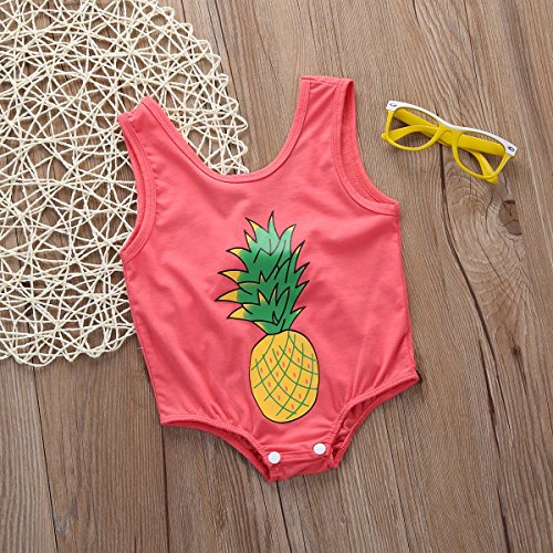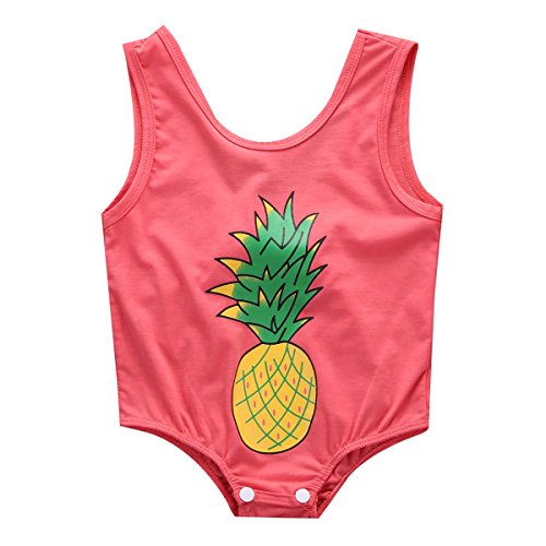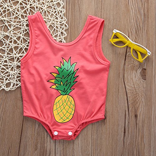 新生児服 女の子 パイナップルプリント 袖なし ボディスーツ ロンパース 大きい蝶結び (70(0-6M))