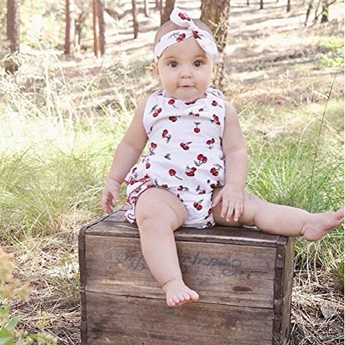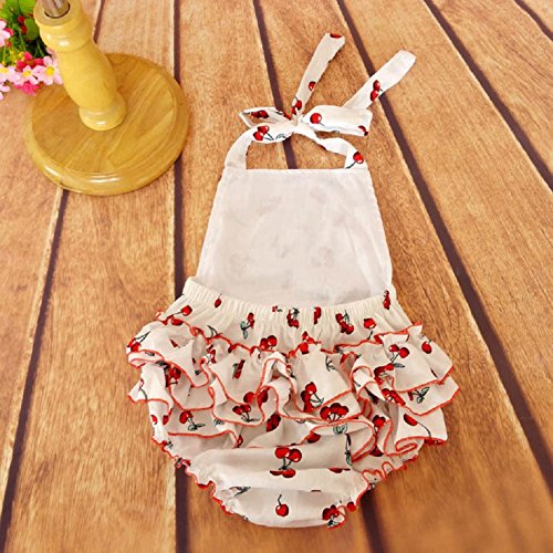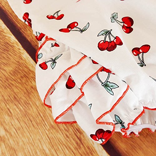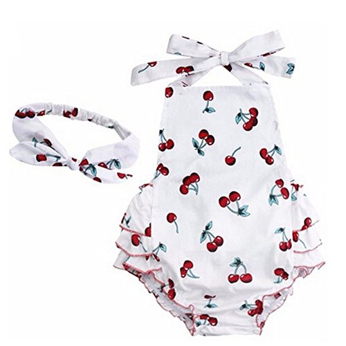 ベビー服 ガール ロンパース ホルターネック レイヤード フリル ブルマ チェリープリント ヘッドバンド付き (80(6-12月), 白)