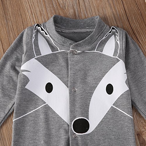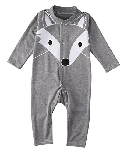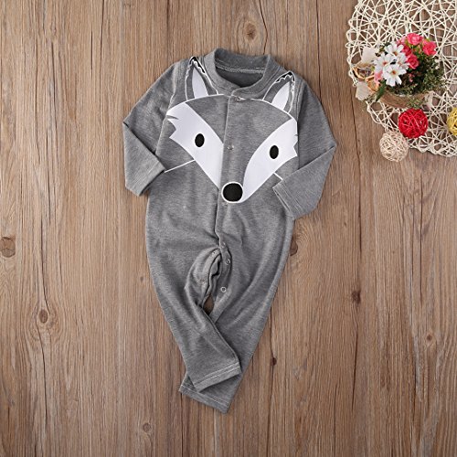 ベビー服 男の子 女の子 ユニセックス 長袖フォックス プリント ロンパース (100(18-24M), グレー)