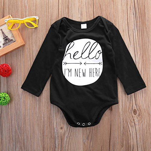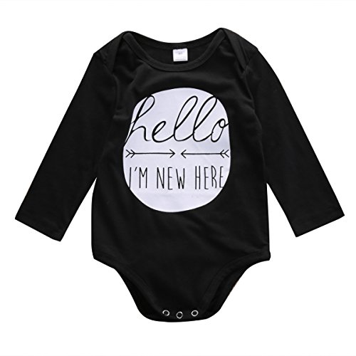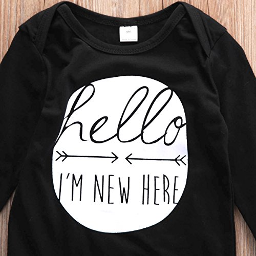 ベビー Hello I'm New Here 長袖ロンパース (100(12-18M), 黒い)