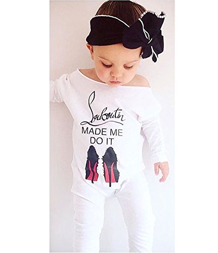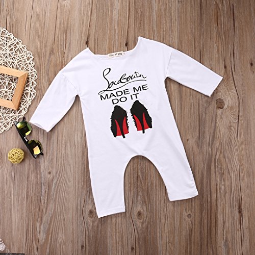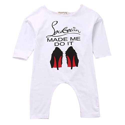 ベビー服 女の子 長袖ハイヒール プリント ロンパース (100(18-24M), ホワイト)