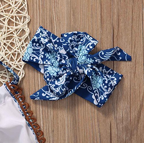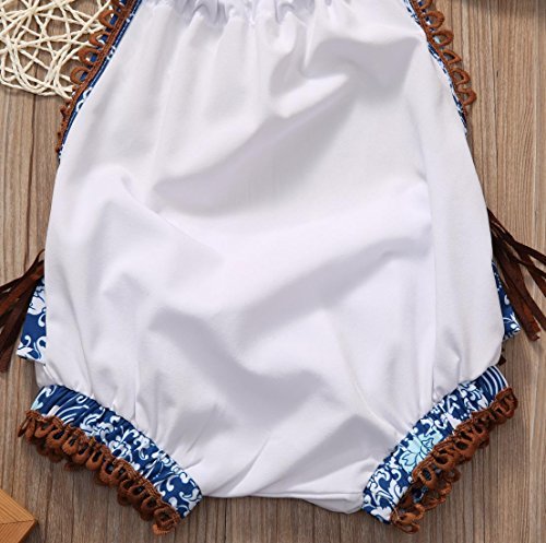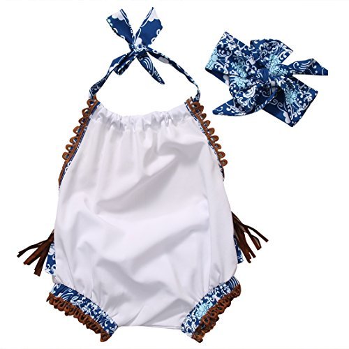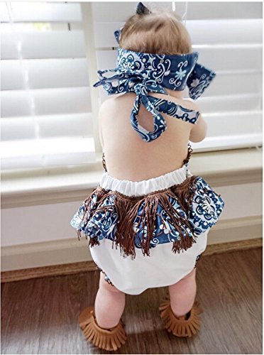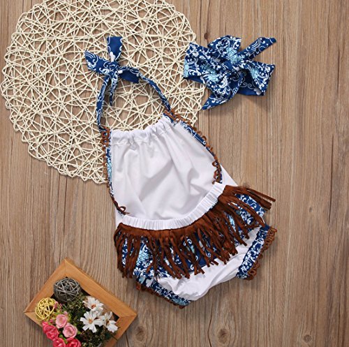 ベビー服 女の子 ホルターネック バックレス ボディースーツ タッセル フリル ヘッドバンド付き (70 (0-6M))