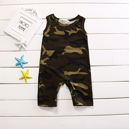 ベビー服 男の子 女の子 ユニセックス ロンパース  ノースリーブのカモフラージュ (70(0-6ヶ月), 灰色)