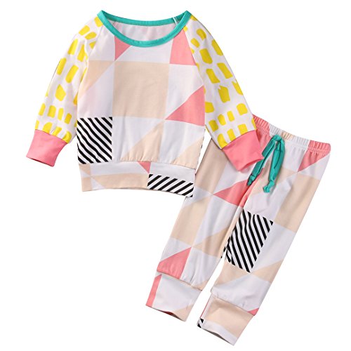 ベビー服 男の子 女の子 長袖幾何学 プリントパーカーと パンツアウトフィット (70(0-6M), イェロー)