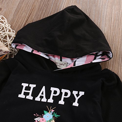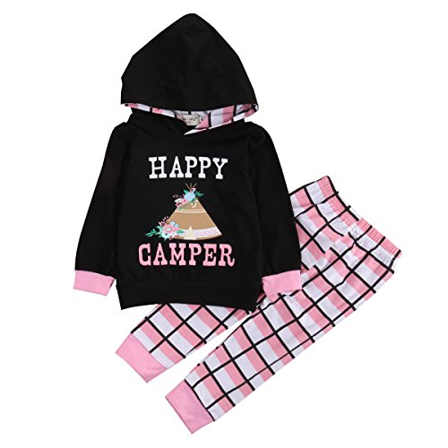 ベビー服 女の子 HAPPY CAMPER 長袖花プリントパーカーとパンツアウトフィット (80(6-12M)) (100(18-24M), ピンク)