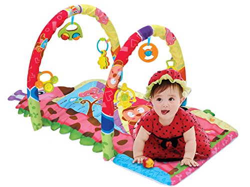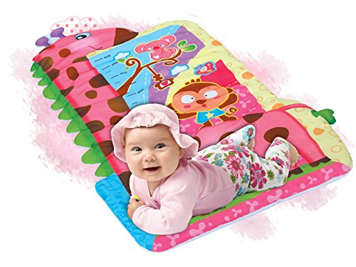 Three modes of play: Sit and play, tummy time and overhead discovery.;Extra plush soft play mat with bright colors.;6 rattle toys for your newborn to interact with.;Perfect for turning small spaces into big fun.;Comes in easy-to-open recyclable packaging.