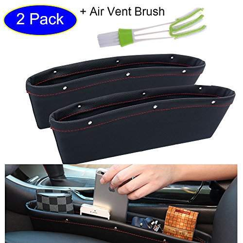 2パックシートコンソールGap Filler、PMEプレミアムPUレザーカーシートコンソールオーガナイザーSide Seatドロップキャッチャーストレージボックス ブラック ASGF2BLCN