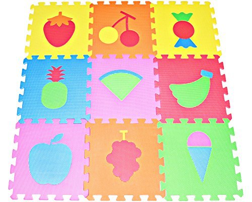 The foam tile floor mat is a must have for all little ones.This Fruit Puzzle Play Mat is a good option for taking care of all age kids.Ideal for Play room, Excise room, Daycare & School.Because of easy to use with innovation interlocking tiles, this foam tile also can cover the wall around the kids activity area.