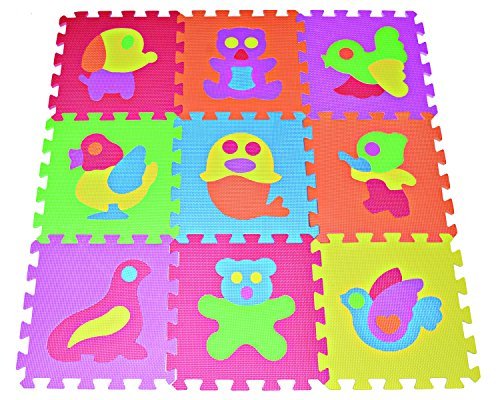 Imagination, Creative Games, Early Education; Visual Sensory Development & Hand Eye Coordination; Safe, soft and durable; Easy to use with colorful interlocking tiles; Easy to clean with damp cloth & mild soap; Non-Toxic, tested FREE of Lead, BPA's and Phthalates; Meet or exceed the US regulated toy safety standards; 9 tiles, Zoo Puzzles colorful EVA foam mat; 6 colors: Red, Yellow, Green, Blue, Orange, Pink; Tile size: 12" x 12" x 0.4" (315mm x 315mm x 10mm); Cover area: 9 SQ. FT. (approx. 0.85 SQ. M);