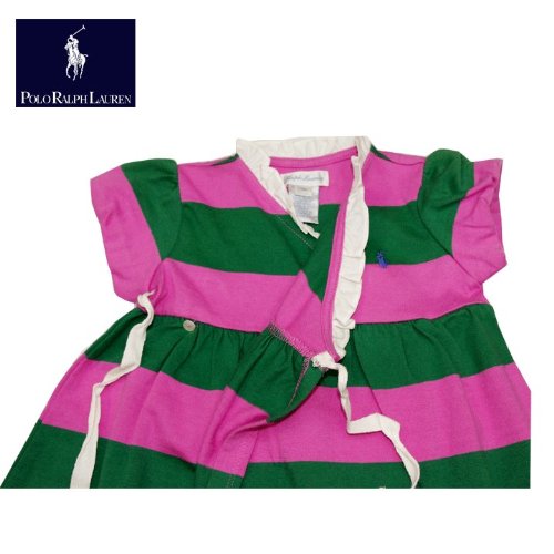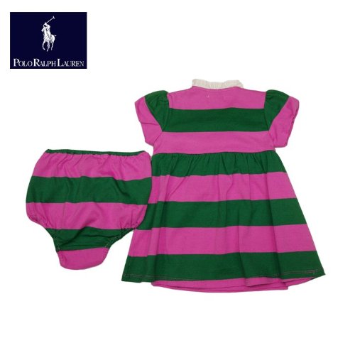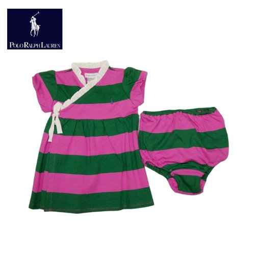 RALPH LAUREM【ラルフローレン】BABY ボーダーワンピース/ピンク・グリーン/インナーパンツ付き