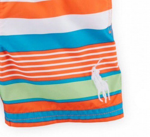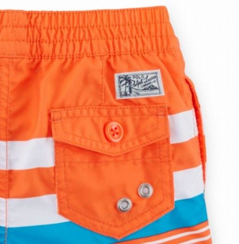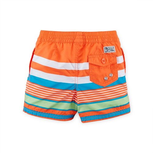【アウトレット品】 ポロラルフローレン ビッグポニー ボーダー スイムトランクス オレンジマルチ (男の子12~24か月用) 18M [並行輸入品]