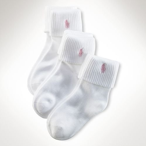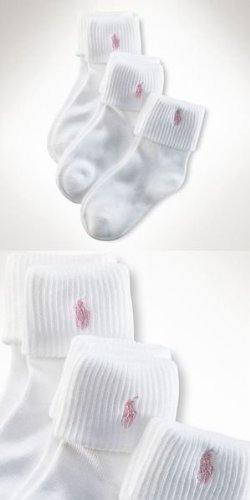 Ralph Lauren(ラルフ ローレン)ロール ソックス 3足セット 靴下【月齢:2歳~6歳】(並行輸入品) (2-4T(2歳~4歳), ホワイト三足) [並行輸入品]