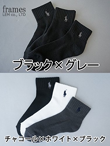 (ポロ ラルフローレン) POLO Ralph Lauren ソックス キッズ (男の子) 3足セット ポニー ブラック×グレー 4-7 [並行輸入品]